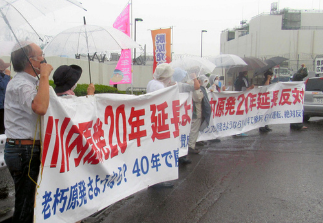 美浜原発は1976年12月に運転開始し、44年をこえています。原子炉は炉心から出る中性子線で鋼材などがもろくなります。2020年12月に改定された原子炉等規制法では、原則40年で、原子力規制委員会が認めれば最大60年への延長が認められます。