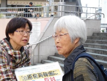 原発問題全道連絡会は、JR札幌駅前で「9月チェルノブイリデー行動」をおこないました。さわやかな秋晴れのもと、旧東電経営陣三人の無罪は許せない! 泊原発の再稼働を許すな!と元気にアピールしました。泊原発の再稼働の賛否を問うシール投票の訴えに、通りがかりの人が応じてくれました。