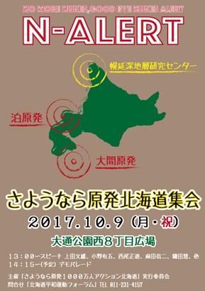 総選挙で野党連合政権を樹立して原発ゼロ基本法を制定しよう! 10月の寿都町長選挙で「核のごみ」の持ち込みに反対する町政を実現しよう! 北海道では、イレブンアクションやチェルノブイリデーなどに取り組んで、運動を積み上げています。