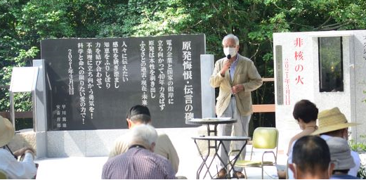 (5) 最後に、「福島原発事故の発生によって、核兵器と同様原発も人類と共存できないことを明らかにした。強制避難地の楢葉町に、ヒロシマ・ナガサキ・ビキニ・フクシマを結ぶ「非核の火」が、多くの賛同のもと灯されたのも、その表れの一つである。・・・それが、再び事故を繰り返してはならないと、第二原発の廃炉を求める草の根の県民運動として取り組まれ、ついに原発ゼロの福島が実現した。