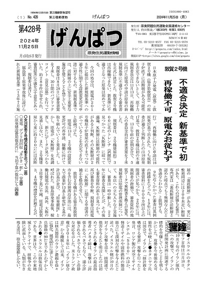 原発問題住民運動全国連絡センターが発行する情報紙「げんぱつ」の最新号を紹介します。