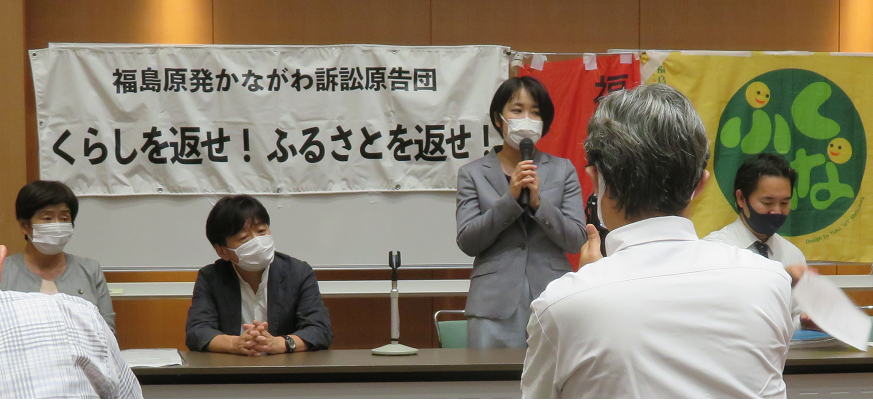 最後に、避難指示区域外であるいわき市から神奈川県に避難した原告が、事故当時書学小学校1年に入学する息子をかかえ看護師の仕事をもっていた母親としての苦労を、切々と陳述した。