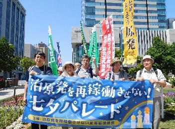 北海道では「再稼働審査の申請からまる5年、北電は申請を撤回し、泊原発から撤退せよ!」と元気にアピールする7・8七夕集会とパレードの取り組みをおこないました。
