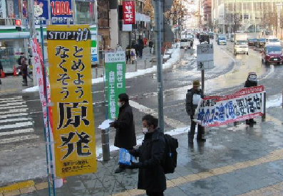 イレブン行動は12月11日の昼休みに行われました。チェルノブイリ行動は12月25日12時15分から同45分に行われました。